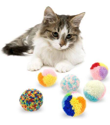 Kalanka-Lot De 6 Jouets Colorés Pour Chat, Boules Interactives Pour Chat En Fil De Laine, Pompons Cat Balls Kitten Chasing Toys Pour Chats D'intérieur