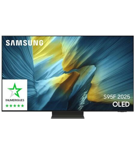 TV OLED 4K 163 cm - Samsung TQ65S95F - Ce téléviseur Samsung incarne le meilleur de l'OLED nouvelle génération - Son principal atout ? Une dalle OLED sans reflet certifiée Glare Free* qui sublime chaque image même en pleine lumière - Grâce au processeur NQ4 AI Gen3, l'image est analysée et optimisée scène par scène en temps réel pour une précision renforcée, avec un upscaling jusqu'en 4K - Compatible HDR10+ Adaptive, HDR Gaming et OLED HDR Pro, il propose aussi un traitement HDR Remastering Pro via IA pour des contrastes plus profonds et des détails plus éclatants - Le colorimétrie est fidèle grâce à la technologie OLED auto-émissive et à la certification PANTONE - Le Real Depth Enhancer renforce la profondeur des visages et des objets - Avec ses 4 ports HDMI 2.1 en 4K 165 Hz, les gamers profiteront d'un gameplay ultra-fluide avec VRR, ALLM, FreeSync Premium Pro, Game Bar, Minimap Zoom et Motion Xcelerator 165Hz - L'expérience sonore est tout aussi haut de gamme avec un système 4.2.2 ...
