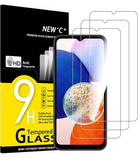 Lot de 3 Verre Trempé Samsung Galaxy A14 5G. Très grande dureté résiste aux égratignures jusqu'à 9H. Haute-réponse et haute transparence. Solution idéale d'anti-casse Extrêmement haute dureté, protège l'écran du téléphone des chocs et des dommages accidentels. Fabriqué en verre trempé premium haute qualité avec 0,33 mm épaisseur avec les bordures arrondis. Sans poussière sans traces de doigts un bouton-poussoir trop facile l'installation sans bulle. Oléophobe il a un revêtement oléophobique qui empêche les empreintes digitales et d'autres contaminants et rend le film facile à nettoyer. NEW'C Protection d'écran en Verre Trempé Samsung Galaxy A14 5G. Touche délicate il est revêtu sur le dos avec un adhésif de silicium solide qui rend l'installation facile et attache le film fermement afin de ne pas influer sur la sensibilité de l'écran tactile. ...