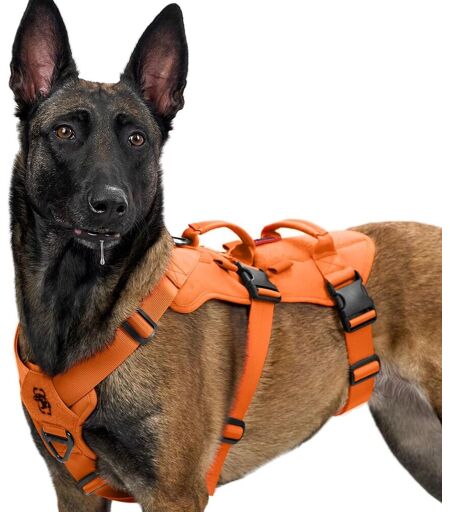 Kalanka-Harnais Tactique T-Bone Avec 2 Poignées Anti-Éclatement Réglable Pour Chien, Chasse, Randonnée, Entraînement, Promenade, Activités De Plein Air, Orange, Taille Xl