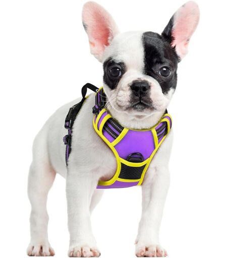 Kalanka-Harnais Chien Anti Traction, Arnet Pour Chiens Avec Poignée Contrôl, Facile À Mettre, Gilet Réfléchissant Réglable Avec Attache Devant, Harnais Pour Chien Petit Moyen, Violet Et Jaune, S