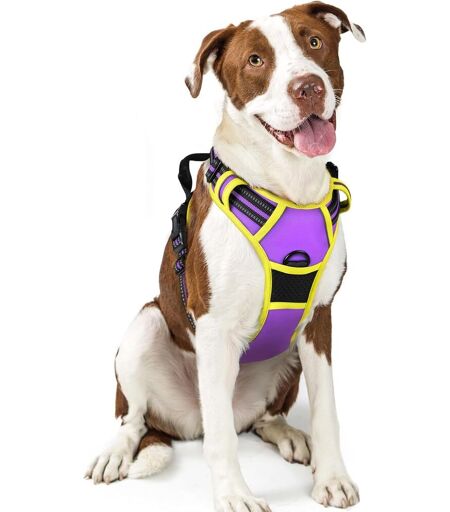 Kalanka-Harnais Chien Anti Traction, Arnet Pour Chiens Avec Poignée Contrôl, Facile À Mettre, Gilet Réfléchissant Réglable Avec Attache Devant, Harnais Pour Chien Grand Moyen, Violet Et Jaune, L