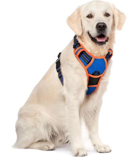 Kalanka-Harnais Chien Anti Traction, Arnet Pour Chiens Avec Poignée Contrôl, Facile À Mettre, Gilet Réfléchissant Réglable Avec Attache Devant, Harnais Pour Chien Grand, Bleu Et Orange, Xl