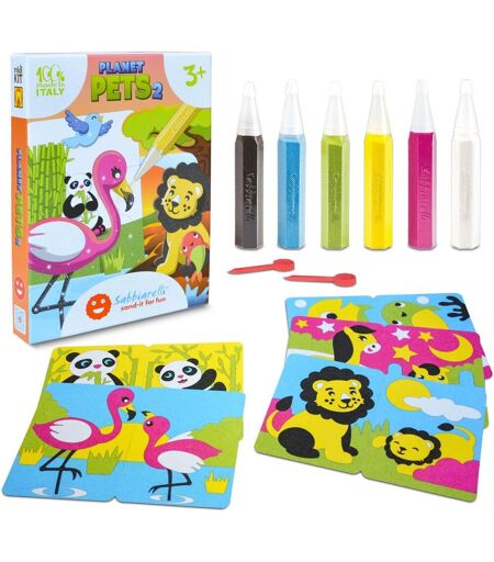 KALANKA-Sand-it For Fun Kit Planet Pets 2 Planète des Bébés Animaux 2 - Ensemble d'Activités Créatives: Colorie avec le Sable, Idée Cadeau Anniversaire Pour Enfants 3 Ans+