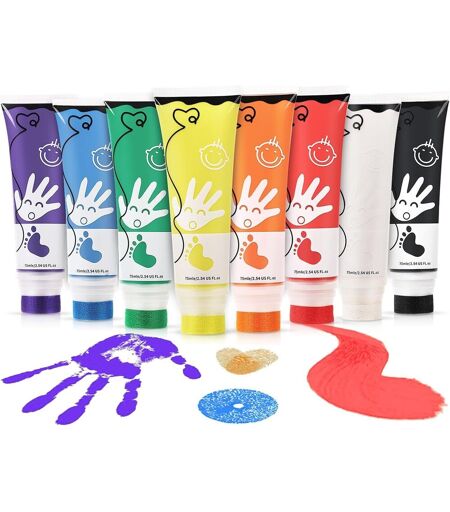 Peinture au doigt multicolore: Kit peinture enfant contient 8 couleurs de peinture, violet, bleu, blanc, noir, jaune, orange, rouge, vert. Les peintures sont dotées d'un embout éponge qui vous permet non seulement d'appliquer les peintures sur vos mains pour un coloriage créatif, mais aussi d'utiliser l'embout éponge pour peindre directement sur du papier, de la toile ou d'autres supports sans avoir besoin d'outils supplémentaires. Sûr et Non Toxique: La sécurité des enfants est le premier principe. peinture au doigt est fabriqué à partir de matériaux non toxiques et non dangereux et peut être utilisé en contact direct avec la peau. Il peut être utilisé par les enfants comme par les adultes et peut être apprécié en toute tranquillité, qu'il s'agisse d'une activité parent-enfant ou d'une création artistique personnelle. Permet aux utilisateurs de créer et de s'amuser en peignant dans un environnement sûr. Lavable et Facile à Nettoyer: Encre empreinte bébé sont lavables et s'enlèvent facilement de la peau et des vêtements. Un simple rinçage à l'eau ou un traitement au détergent normal suffit à les éliminer, ce qui réduit considérablement la charge de nettoyage après la peinture et rend le processus créatif plus facile à mettre en ?uvre. Développer la créativité: Kit peinture enfant stimulera non seulement la perception tactile des enfants, mais développera également leur pensée créative. L'imagination et la créativité de l'enfant sont ainsi pleinement libérées. En peignant, votre enfant apprend également à distinguer les couleurs et à les mélanger. Qu'ils veuillent peindre le monde de leurs rêves ou raconter leurs propres petites histoires, ces peintures deviendront la baguette magique qu'ils auront entre les mains. Large gamme d'utilisations: La peinture au doigt est idéale pour que les enfants apprennent à peindre et développent leur créativité. C'est également un excellent cadeau pour diverses occasions, telles que les anniversaires, Noël, les vacances et les fêtes d'enfants. Elles stimulent non seulement la curiosité des enfants pour les couleurs et les formes, mais favorisent également l'interaction et la coopération entre parents et enfants, créant ainsi de chaleureux souvenirs de famille..La livraison depuis la France est prévue dans 5 jours ouvrés, n'hésitez pas à passer votre commande ...