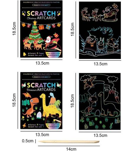 KALANKA-Scratch Art kit pour Enfants Magic Rainbow Papier à gratter Carnet de Pâques Cadeau d'anniversaire pour garçons et Filles (Dinosaure Noël)