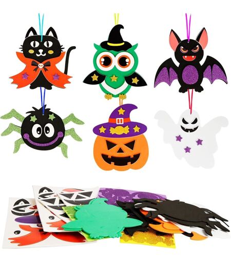 KALANKA-12 Kits d'Activité Manuelle Halloween d'Enfants DIY Araignée Chauve-Souris Hibou Citrouille Fantôme Chat avec Autocollant en EVA pour Loisir Créatif Fête Jeux Groupe
