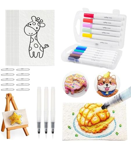 ¿Peinture Magique Gonflable (2025)¿Kit de peinture texturée en mousse magique. Découvrez l'art 3D pur avec du papier mousse spécial ! Dessinez et regardez vos créations se développer comme par magie au contact de l'eau. Ce matériau en mousse innovant gonfle à l'humidité, transformant les ?uvres plates en reliefs 3D tactiles qui donnent vie à chaque ?uvre ¿Magic Puffy Kit de peinture texturée en mousse¿Aucune connaissance ni outil préalable requis ! Dessinez, peignez ou tamponnez votre imagination, puis recouvrez-la avec le grand feutre aquarelle à pointe souple inclus. En quelques secondes, les lignes plates se transforment en textures dynamiques. Peinture Magique Gonflable, éponge à dessin 3D avec feutre à eau, papier de peinture DIY fait main, texture mousse, papier d'art popcorn 3D vierge ¿kit de peinture magique sur toile¿Le kit de peinture texturée comprend 10 formes de papier texturé en mousse aux motifs différents. Vous pouvez également découper la forme souhaitée. Nous proposons un large choix pour laisser libre cours à votre imagination et à votre créativité ¿Kit de loisirs créatifs tout-en-un¿Peinture Magique Gonflable Art. Le coffret comprend 10 feuilles de mousse texturées rectangulaires, 12 marqueurs brillants, 3 grands crayons aquarelle, 1 porte-peinture en bois et 10 chaînes circulaires. Tout le nécessaire pour commencer à créer sans attendre ¿Polyvalent et compatible¿Le coffret ultime de peinture texturée magique 3D vous apporte une joie infinie ! Mélangez les supports à votre guise ! Utilisez des crayons de couleur, des stylos gel ou des tampons avec des marqueurs. Créez des affiches en relief, des cadeaux personnalisés ou des maquettes pour une exposition scientifique. Ajoutez même des paillettes ou des autocollants après activation ! De l'eau et de la créativité : une magie sans limites Attention:Ce jouet n'assure pas une protection.La livraison depuis la France est prévue dans 5 jours ouvrés, n'hésitez pas à passer votre commande ...