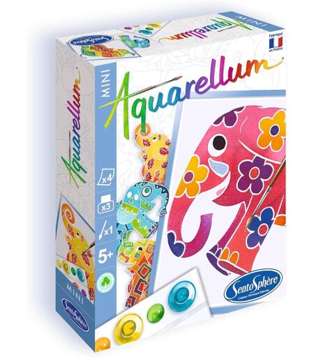 KALANKA-SentoSphère - AQUARELLUM MINI - ELEPHANTS 4 PLANCHES - Kit peinture - Peinture Aquarellable Magique - A partir de 5 ans - fabriqué en France, Ensemble de 8 pièces, Multicouleur