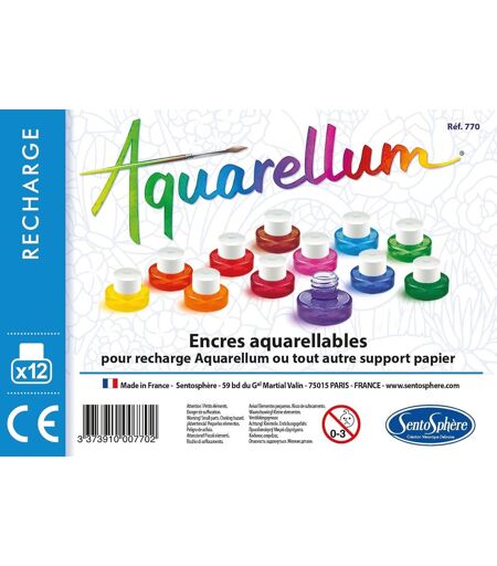 KALANKA-SentoSphère - AQUARELLUM - VALISETTE 12 ENCRES - Recharge Peinture Aquarellum - Kit peinture - Peinture Aquarellable Magique - A partir de 7 ans - fabriqué en France