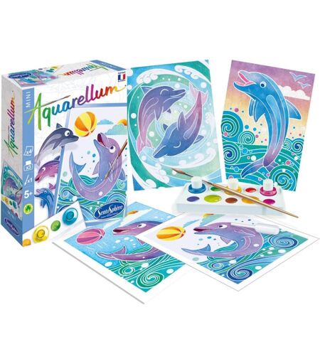 KALANKA-SentoSphère - AQUARELLUM MINI - DAUPHINS 4 PLANCHES - Kit peinture - Peinture Aquarellable Magique - A partir de 5 ans - fabriqué en France, Bunt, Bleu (Ou Nuances)