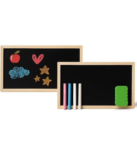 KALANKA-.- Lot de 2 Ensembles Scolaire et Loisir 3en1 - Kit Ardoise avec Éponge Effaçable et Craies - Polyvalent,Facile à Utiliser et Transporter - 2 Pièces 28x15cm