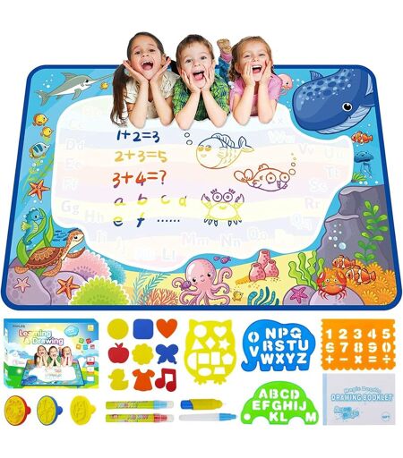 KALANKA-Tapis de Dessin à Eau, 100 * 70cm Pas de Gâchis Tapis Dessin Enfant, 10 Couleurs Tapis Doodle Matte, Jouets Éducatifs pour Enfants, Cadeau de Noël Adapté aux Enfants dès 2 ans+