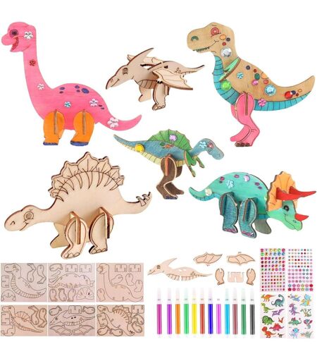 KALANKA-34 Pièces Activité Manuelle Enfant Bois Bricolage Anniversaire 6 8 4 5 Ans Activites Kits Loisirs Créatifs Creation Garcon Ensemble Thème des 3d Dinosaures Cadeau Avec Stylo Aquarelle et Auto