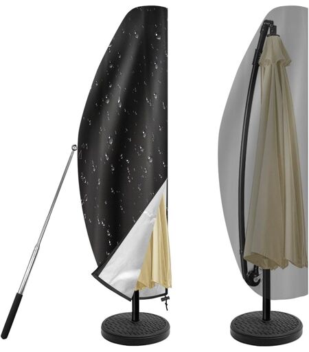 [ Taille de housse parasol deporte ] La taille de la housse de parasol est de 265cm (H) x 40cm (haut) / 70cm (milieu) / 50cm (bas). Convient aux parasols d'ext¿¿rieur, aux parasols bananes, parasol de jardin exterieur et aux parasols d¿¿port¿¿s d'un diam¿¿tre de 2m ¿¿ 4m. Le mat t¿¿lescopique de 1m vous permet de mettre facilement votre parasol d¿¿port¿¿ sans avoir besoin d'une cha pour ¿ºtre seul. Veuillez noter veuillez mesurer votre parasol avant d'acheter.[ Mat¿¿riau de haute qualit¿¿ ] Housse parasol tissu oxford 420D avec sous-couche PU, cette housse imperm¿¿able est r¿¿sistante aux UV, ¿¿ la d¿¿chirure et ¿¿ la d¿¿coloration. Les bords li¿¿s ¿¿ double couture augmentent la r¿¿sistance ¿¿ la d¿¿chirure et emp¿ºchent efficacement les d¿¿chirures et les fissures, ce qui garantit une utilisation ¿¿ long terme de cette housse pour parasol exterieur. Prot¿¿ge mieux vos parasol des environnements difficiles tels que le soleil, la pluie, la neige, la poussi¿¿re etc..[ Omni-Protection ] La housse parasol peut prot¿¿ger efficacement votre parapluie dans toutes les conditions m¿¿t¿¿orologiques et emp¿ºcher la pluie, la neige, la chaleur et d'autres conditions climatiques difficiles d'endommager votre parapluie. Housse parasol deporte peut ¿ºtre utilis¿¿ tout au long de l'ann¿¿e. La conception toutes saisons offre une protection compl¿¿te ¿¿ vos parasols contre les rayures, la poussi¿¿re, l'humidit¿¿, la rouille, la pourriture et la moisissure.[ Facile ¿¿ nettoyer et ¿¿ ranger ] Si la housse parasol se salit apr¿¿s une longue utilisation, le mat¿¿riau est tr¿¿s facile ¿¿ nettoyer, il suffit de le rincer ¿¿ l'eau et de le faire s¿¿cher au soleil. Housse de protection pour parasol livr¿¿ avec un sac de rangement, elle se replie ¿¿galement pour faciliter son rangement lorsqu'elle n'est pas utilis¿¿e (sac de rangement inclus).[ Facile ¿¿ util r ] Chaque housse de parasol est ¿¿quip¿¿e d'une tige t¿¿lescopique de 1 m de long et d'une fermeture ¿¿clair imperm¿¿able pour faciliter l'installation et le retrait, fermeture ¿¿clair pour ouvrir et fermer cette housse plus facilement. Housse de protection parasol cordon de serrage sur la face inf¿¿rieure ferme la housse du parasol pour ¿¿viter qu'elle ne soit emport¿¿e par le vent ou d¿¿chir¿¿e, et assure une meilleure stabilit¿¿ et un meilleur r¿¿glage. ...