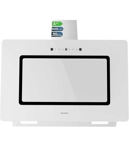 Cecotec CHECARZHN--NO1-Hotte Aspirante Bolero Flux Dt 908000 Glass White A++ 90 Cm, 800 M³/H, Commande Tactile, 3 Niveaux De Puissance, Finition Verre Blanc, Moteur 210W, Contrôle Gestuel, Fonction Retard.