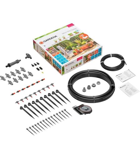 Gardena CHECARZHN--NO1-Kit D'Arro Goutte-À-Goutte Pour Plantes En Pots M Automatic Système Micro- ip Pratique Avec Programmateur Pour 7 Pots Et 3 Jardinières (13002-20)
