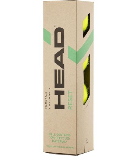 La balle semi-pressurisée HEAD RESET est un choix plus durable pour les entraîneurs et les joueurs récréatifs. La balle contient 10 % de matériaux . Le carton à 4 boules est fabriqué à partir de matériaux 100 % et, au lieu d'un revêtement en papier, les couleurs sont imprimées directement sur le carton. ...
