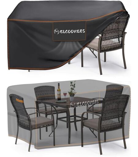 Housses imperm¿¿ables et anti-UV les housses de table de jardin MBLCOOVERS sont recouvertes d'un rev¿ºtement en polyur¿¿thane ¿¿paissi, ce design r¿¿sistant aux UV peut offrir une protection exceptionnelle sous la lumi¿¿re du soleil ; du ruban adh¿¿sif extra imperm¿¿able est sp¿¿cialement ajout¿¿ sur les coutures sup¿¿rieures pour emp¿ºcher l'eau de pluie de p¿¿n¿¿trer. La conception toute l'ann¿¿e offre une protection compl¿¿te pour vos meubles et coussins contre les rayures, la poussi¿¿re, l'humidit¿¿, la rouille, la pourriture.R¿¿sistance ¿¿ la d¿¿chirure cette housse de meubles de jardin durable est fabriqu¿¿e en tissu Oxford haute densit¿¿ am¿¿lior¿¿, plus ¿¿pais et plus durable que de nombreuses autres housses ext¿¿rieures r¿¿guli¿¿res ; les bords reli¿¿s ¿¿ double couture augmentent la r¿¿sistance ¿¿ la d¿¿chirure et emp¿ºchent efficacement les d¿¿chirures, les d¿¿chirures et les craquements, ce qui garantit une utilisation ¿¿ long terme de cette housse de table d'ext¿¿rieurD¿¿tails parfaits au bas de la housse se trouvent 4 sangles de fermeture ¿¿ clic sp¿¿cialement con?ues pour maintenir la housse en toute s¿¿curit¿¿ sur les meubles. Les ouvertures d'a¿¿ration peuvent maintenir compl¿¿tement le flux d'air, r¿¿duire la condensation interne, s¿¿cher le coussin int¿¿rieur ou les meublesNettoyage facile et rangement pratique la bache est extr¿ºmement facile ¿¿ nettoyer. Vous pouvez le rincer et le s¿¿cher au soleil. Nous sommes livr¿¿s avec un sac de rangement pour un transport facile et un rangement facile lorsqu'il n'est pas utilis¿¿ Service et garantie Croyez que MBLCOOVERS peut fournir les solutions les plus avanc¿¿es, durables et professionnelles pour vos meubles. 30 jours sans raison de remboursement, si vous avez des questions, n'h¿¿sitez pas ¿¿ nous contacter. ...