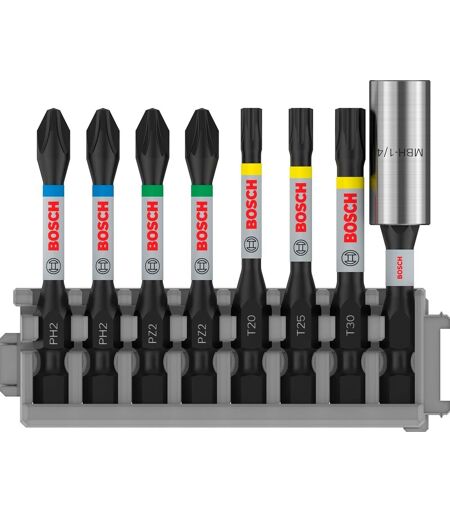 Bosch CHECARZHN--NO1-Professional 8 Pièces Pack D'Embouts De Vis (Impact Control, T/Pz/Ph Bits, Longueur 25 Mm, Pick And Click, Accessoires De Visseuse À Percussion)
