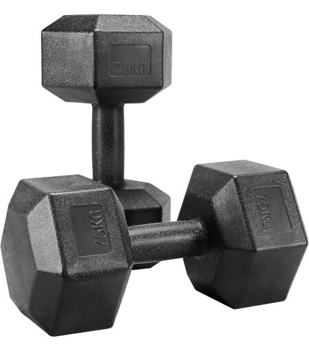 Matériaux durables vendus dans un ensemble de 2 haltères en fonte sélectionnés remplis de béton, recouverts d'un mince revêtement en PVC noir sur les têtes pour absorber les chocs et protéger le sol en cas de chute. Ergonomique et antidérapant chacun mesure 10 cm de long pour un poids fixe de 7,5 kg.La poignée confortable, facile à saisir, antidérapante et suffisamment lourde pour l'entraînement des muscles du bras. Forme hexagonale les têtes hexagonales facilitent l'utilisation et le mouvement, empêchant les haltères de rouler. Le revêtement en PVC sur les têtes agit comme une couche de protection pour réduire les es et les rayures sur le sol. Polyvalent une paire d'haltères idéales pour le renforcement musculaire. Idéal pour les haltérophiles et les culturistes pour les travaux lourds. Ils s'adaptent à la maison, aux gymnases, aux clubs, aux études, aux cours de fitness. 2 pièces pour un package poids internes / externes faciles à stocker et parfaits pour voyager. Ils vous aideront à développer votre masse musculaire pour l'entraînement cardio. Poids visible sur les têtes de guidon pour référence. ...