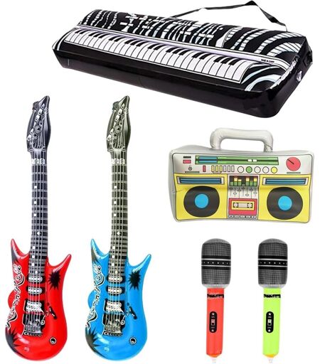CHECARZHN--NO1-Kit Déco Rock Party Gonflable - Ensemble D'Accessoires Instruments De Musique Gonflables Pour Années 80, Photobooth Et Soirées Éclatantes