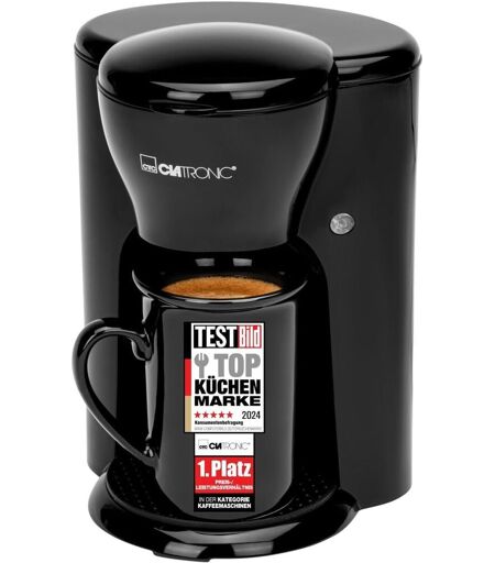 Clatronic ChenQuanSarl-Machine À Café 1 Tasse Cafetière Cafetière Filtre Avec Tasse En Céramique Incluse 140 Ml Petite Cafetière Filtre Idéale Pour Les Déplacements Ka 3356