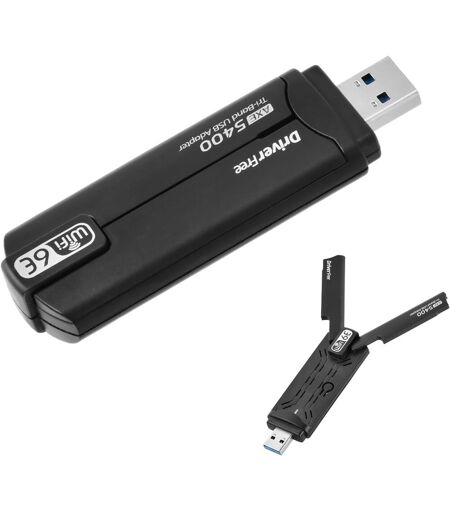 Connectivité Ultra-rapide cet adaptateur WiFi USB offre des vitesses allant jusqu'à 5,4 Gbit/s (2402 Mbps sur 6 GHz, 2402 Mbps sur 5 GHz ou 574 Mbps sur 2,4 GHz). Profitez de jeux en ligne fluides et d'un streaming vidéo haute définition avec notre adaptateur WiFi USB 3.0 tri-bande AX5400Transmission Robuste la conception à 2 antennes à gain élevé garantit une transmission et une réception plus fortes. Notre adaptateur WiFi 6E assure une connexion WiFi fiable dans divers environnements, favorisant des engagements numériques ininterrompusCryptage WPA3 la sécurité avancée avec cryptage WPA3 comparable aux normes de cryptage de niveau bancaire protège votre connexion contre les intrusions. Cette fonctionnalité renforce votre réseau contre divers types d'attaques, y compris les attaques par force brute et par dictionnaire hors ligneCompatibilité du Routeur notre série AX5400 est compatible avec tous les routeurs WiFi prenant en charge WPA3/WPA2/WPA/WEP. Aucune interférence provenant d'appareils perturbateurs courants. Améliorez votre connectivité et votre expérience Internet sans fil avec la pr en charge de notre adaptateur WiFi tri-bandeConfiguration Conviviale pilote préchargé intégré pour remplacer les tracas du pilote de CD physique, installation facile. Compatible avec Windows 11/10. Remarque la connexion à la bande WiFi 6 GHz nécessite Windows 11 ; Windows 10 ne prend en charge que les bandes 5 GHz et 2,4 GHz ...