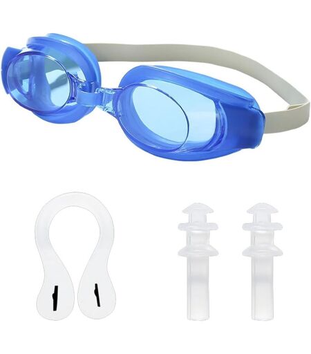 Kit complet1 paire de lunettes de natation bleues + 1 paire de bouchons d'oreille blancs + 1 pince-nez blanc.Lentilles antibuéeLes lentilles de ces lunettes de natation sont traitées antibuée pour une meilleure vision sous l'eau.Protection solaireOffre la meilleure protection contre le soleil lors de la baignade.Facile à ajusterLes sangles réglables s'adaptent au tour de tête des enfants de 3 à 12 ans.Plaquettes nasales souples et confortablesLes plaquettes nasales souples rédu nt l'inconfort et rendent les lunettes confortables à porter.Qualité supérieureLes lunettes de natation un xes de haute qualité, parfaites pour les nageurs en herbe. Achetez en toute confiance ! ...