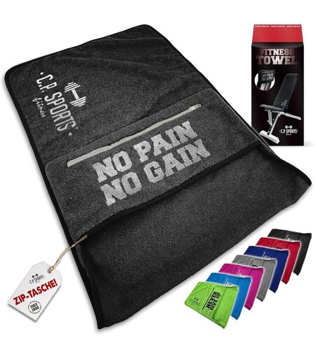 SPORTIVE La serviette de fitness C.P. SPORTS en microfibre extra-douce présente de superbes caractéristiques qui rendent ton entraînement encore plus agréable ! Une capuche permet une fixation optimale sur le dossier de ton appareil de fitness et la serviette possède une grande poche pour ranger tes affaires personnelles et tes objets de valeur. La serviette parfaite, un compagnon indispensable pour la salle de sport, les cours de sport, le sport de loisirs ou la gym à domicile !PRATIQUE plus jamais de serviette qui glisse de l'appareil, grâce à la capuche astucieuse à l'extrémité de la serviette, qui peut être facilement enfilée sur le dossier ou fixée à d'autres parties de l'appareil. Pour ranger en toute sécurité des objets tels que clés, smartphone / téléphone portable, argent, etc., une poche spacieuse avec fermeture éclair en plastique est également intégrée, afin que tout reste à sa place et que tu puisses te concentrer pleinement sur ton entraînement !STYLIQUE avec ses cinq couleurs vives, ses slogans cool sur la capuche et le logo C.P. SPORTS, tu fais ta déclaration à la gym ! Légère comme une plume et peu encombrante, la serviette est fabriquée en microfibre extra douce et satinée, elle est absorbante et peut être lavée en machine à 40 °C pour une hygiène optimale. Les doubles coutures de la capuche et un large ourlet cousu garantissent une longue durée de vie !PROFESSIONNEL nous sommes le plus grand fabricant et fournisseur allemand d'équipements de musculation, de bodybuilding et de fitness de première classe et, grâce à des décennies d'expérience, nous savons exactement comment soutenir ton entraînement de manière optimale. Quel que soit ton objectif - masse musculaire, force, endurance ou forme et santé en général - C.P. SPORTS est ton partenaire de confiance - never give up !SPÉCIFICATIONS & CONTENU DE LA LIVRAISON Dimensions totales largeur 38 cm - longueur 88 cm / Poids env. 160 g / Sac largeur 38 cm - profondeur 16 cm / Fabriqué en tissu microfibre (100% synthétique) / Fermeture éclair en plastique - pas de pièces métalliques = pas de rouille / Contenu de l'emballage 1x C.P. SPORTS serviette de fitness dans la couleur choisie ...