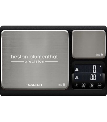 Salter Heston Blumenthal By 1049A Hbbkdr Balance Cuisine De Précision À Double Plateforme,Pèse Aliment Avec Capacité 10Kg Et Plate-Forme Petite Pour Incréments De 0.1G,Mesures Liquides,Noir