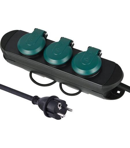 Electraline ChenQuanSarl-Multipr D'Extérieur Professionnelle 3 Pr s Schuko Ip44, Câble En Caoutchouc H07Rn-F 3G1.5, Noir/Vert 62572 (Pr Allemagne Et Espagne)
