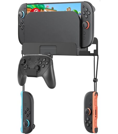 Support Mural Compatible avec Switch 2, Support de Jeux Vidéo en Métal avec 2 Crochets pour JoyCon et 1 Mural pour Manette, Étagère Murale avec des Trous pour la Dissipation de la Chaleur