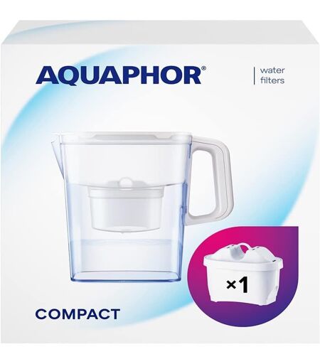 Aquaphor Carafe filtrante compacte pour réfrigérateur avec couvercle rabattable facile à remplir, capacité totale de 2,4 l - Passe au lave-vaisselle (sauf le couvercle) qui s'adapte parfaitement à n'importe quelle porte de réfrigérateur. Excellente dégustation de boissons c s et froides réduit le chlore et le calcaire, vous donnant le meilleur goût des thés et cafés. Filtre extra longue durée et réduit les impuretés réduit le chlore, le calcaire, les pesticides et les métaux lourds, tels que le plomb, le mercure et le cuivre. Dure jusqu'à 200 l, 2 fois plus longtemps que la marque leader Moins de plastique, moins de déchets et plus longue durée de vie l'utilisation des carafes filtrantes Aquaphor permet d'économ r jusqu'à 2400 bouteilles en plastique à u unique de 0,5 l par an. Réduit le calcaire et prolonge la durée de vie de vos appareils électroménagers Alimenté par Aquaphor Aqua une fibre unique échangeuse d'ions (surface d'environ 33 fois plus grand que ceux des filtres concurrents), lie de manière irréversible les ions de métaux lourds. Fiers partenaires du grand projet d'eau britannique. Sans BPA ...