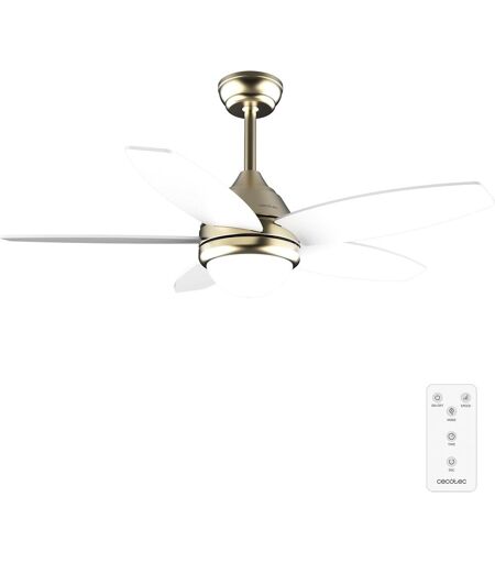 Cecotec CHECARZHN--NO1-- Ventilateur De Plafond Avec Lumière Energysilence Aero 4200 Goldlightwood - 53 W, Diamètre 106 Cm, Lampe Led 3 Teintes, Minuterie, 3 Vitesses, 5 Pales, Mode Été/Hiver