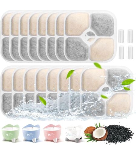 16pcs Filtre Fontaine Eau Chat Pour Catit Fontaine Eau Chat, Système De Triple Filtration Filtres Compatible Avec Catit Fontaine, Charbon Résine Actif Filtre Fontaine Avec 4 Tuyau