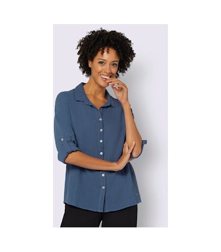 Chemisier en qualité mousseline légèrement structurée et vaporeuse. Col à revers, boutons imitation nacre et ourlet arrondi. Pli creux au dos pour une largeur flatteuse. Manches longues retroussables à fixer avec bride et bouton. Soutient l'initiative « Cotton made in Africa ». ...
