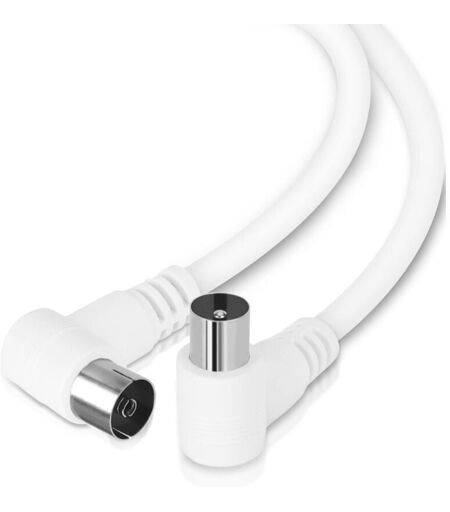 Ikodm - Câble d'antenne tv, câble coaxial, coudé à 90°, prend en charge hdtv, dvb-t DVB-T2, dvb-c, dvb-s, DVB-S2, dab, radio, 1,5 m, blanc