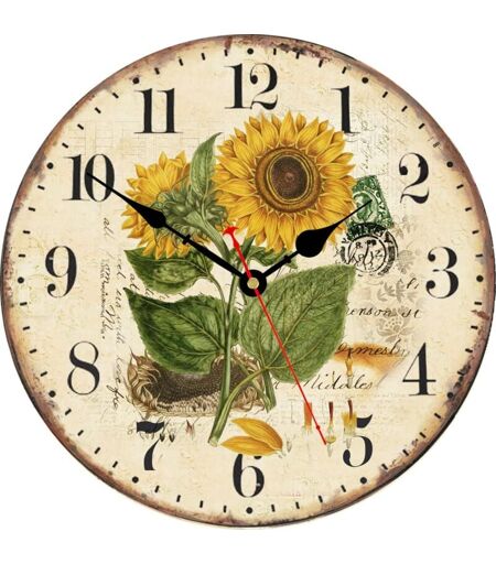 GOTRAYS 34 cm Belle Tournesol Horloge Murale, Vintage Floral Silencieux Non tic-tac Horloges, en Bois Rond Facile à Lire Pendules murales pour la Cuisine/Le