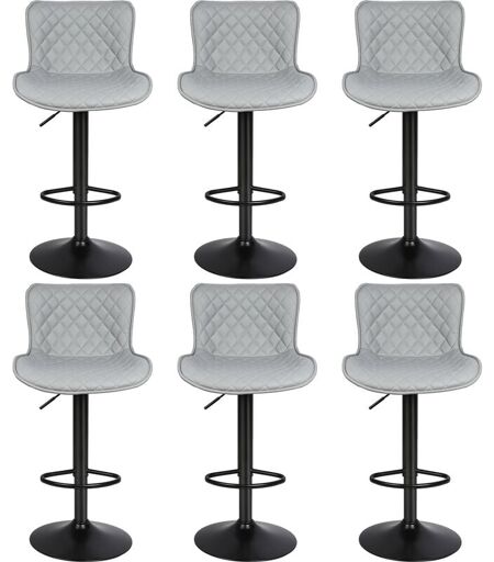 Yongqing - Lot de 6 Tabouret Bar Chaise de Bar Pivotants avec Dossier Tabourets de Bar Réglable en Cuir pu pour Bar îlot de Cuisine Comptoir Gris