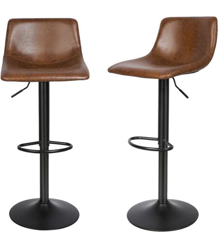 Aqrau Lot de 2 Tabourets de Bar Marron Vintage, Chaise Haute de Cuisine Design Industriel, Réglable en Hauteur pour Maison Cuisine Comptoir Bistro