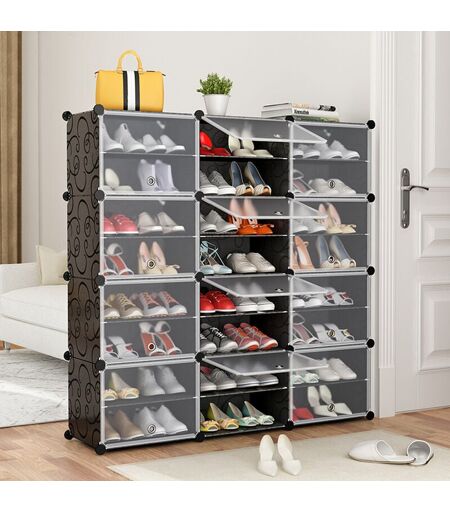 Cette armoire à chaussures élégante et fonctionnelle dispose de 12 compartiments, tous avec des portes, pour garder vos chaussures propres, bien rangées et en un seul endroit. Le meuble à chaussures est composé de panneaux en plastique de haute qualité avec un cadre en acier qui augmente sa rigidité et sa résistance. Grâce à la matière plastique, le meuble à chaussures est facile à nettoyer. Ce produit peut être assemblé facilement et en un rien de temps grâce aux joints en plastique inclus. L'armoire à chaussures est légère et peut donc être déplacée facilement. Caractéristique • Particularité -- nous n'utilisons que du matériel biodégradable, en plus notre matériel est utilisé dans la création de produits pour enfants. • Le moyen le plus simple d'économiser de l'espace -- il est utilisé pour ranger des vêtements, des jouets, des chaussures, des livres dans de sorte que vous pouvez laisser dans le salon, la chambre, la cuisine. • Facile à laver -- il est recouvert d'un matériau ...