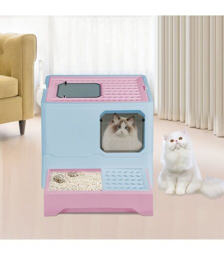 AQRAU Bac à Litière pour Chat,Maison de Toilette pour Chat Pliable, Bac à Litière Fermé Compartiment Inférieur Amovible, Pelle à Litière Nettoyage Facile