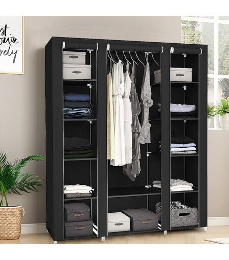 SiFree® Armoire en Tissu non Tissé Penderie de Vêtement Mobilier de Chambre Rangement de Vêtements Unique Tringles à Vêtements (Noir)