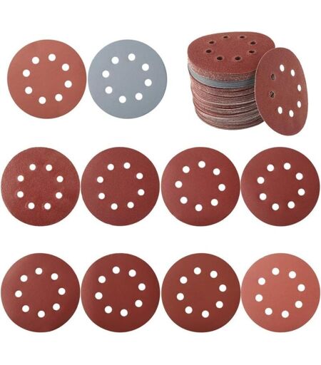 AIDUCHO 100 Pcs Disque De Ponçage 125mm, Disque Abrasif Circulaire, Papier Abrasif Ponceuse, Papier De Verre Bois Pour Grain De