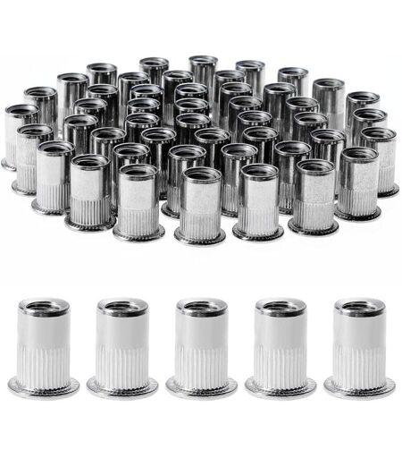 Langray - 100 Pièces Rivet Ecrou M8, Écrous à Rivets en Acier Inox, Assortiment M8 Ecrou Insert Filetés Tête Plate pour Métal Plastique (14 mm x 18