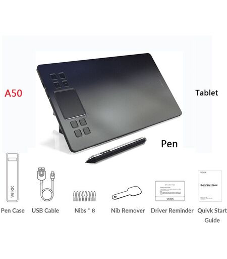 VEIKK-Tablette de dessin professionnelle A50 10x6 pouces,interface Type-C,niveau 8192,sans batterie,pour dessin numérique - Type A50 Black
