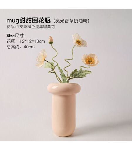 Créatif Coréen Soigneusement Sélectionné Vase En Céramique Salon Arrangement De Fleurs Décoration De La Maison Bureau Vase À Fleurs-Tasse Graisse Vase-Brillant Vanille Crème Poudre Fleur Art Ensemble