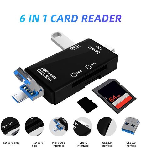 OTG-Lecteur de carte SD et TF de type C,6 en 1,USB 3.0,adaptateur de clé micro USB,5Gbps,lecteur de carte multifonctionnel haute vitesse - Type DKQ-Black-6in1-ABS