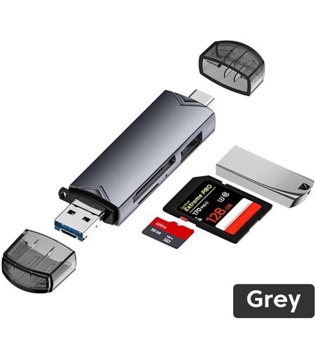 OTG-Lecteur de carte SD et TF de type C,6 en 1,USB 3.0,adaptateur de clé micro USB,5Gbps,lecteur de carte multifonctionnel haute vitesse - Type DKQ-Grey-6in1-metal